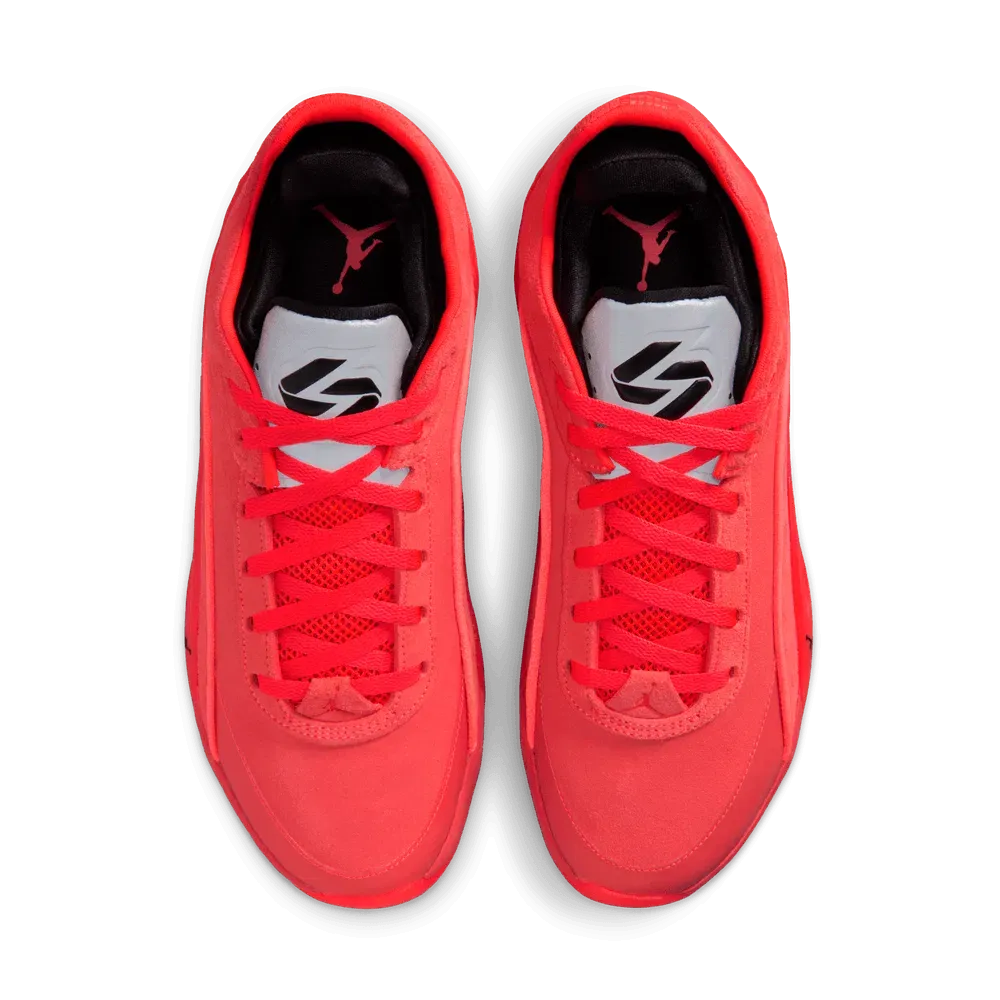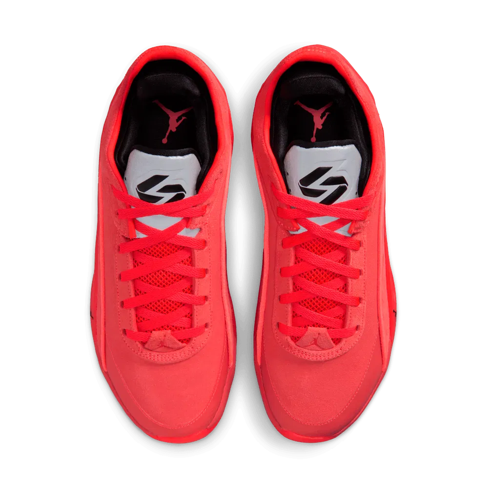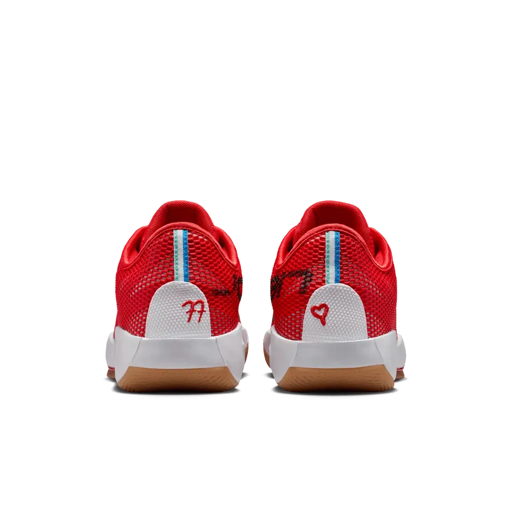 Le thème est donc affiché avec une Jordan Luka 5 qui reprend l’appellation « Matador », son surnom lorsqu’il évoluait au Real Madrid. Le coloris de cette année est moins élaboré que les années précédentes, avec une tige et une semelle en rouge complétées par des touches de noir, pour faire ressortir le « Jumpman » et une languette grise sur laquelle le logo « LD » apparaît en noir.