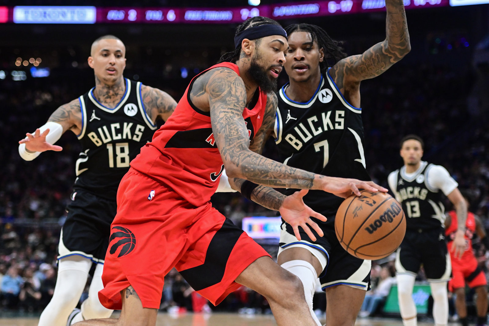 Pas de quatrième victoire consécutive pour Milwaukee, battu à la régulière par Toronto et son intraitable duo Quickley-Ingram (54 points et 15 passes en cumulé).