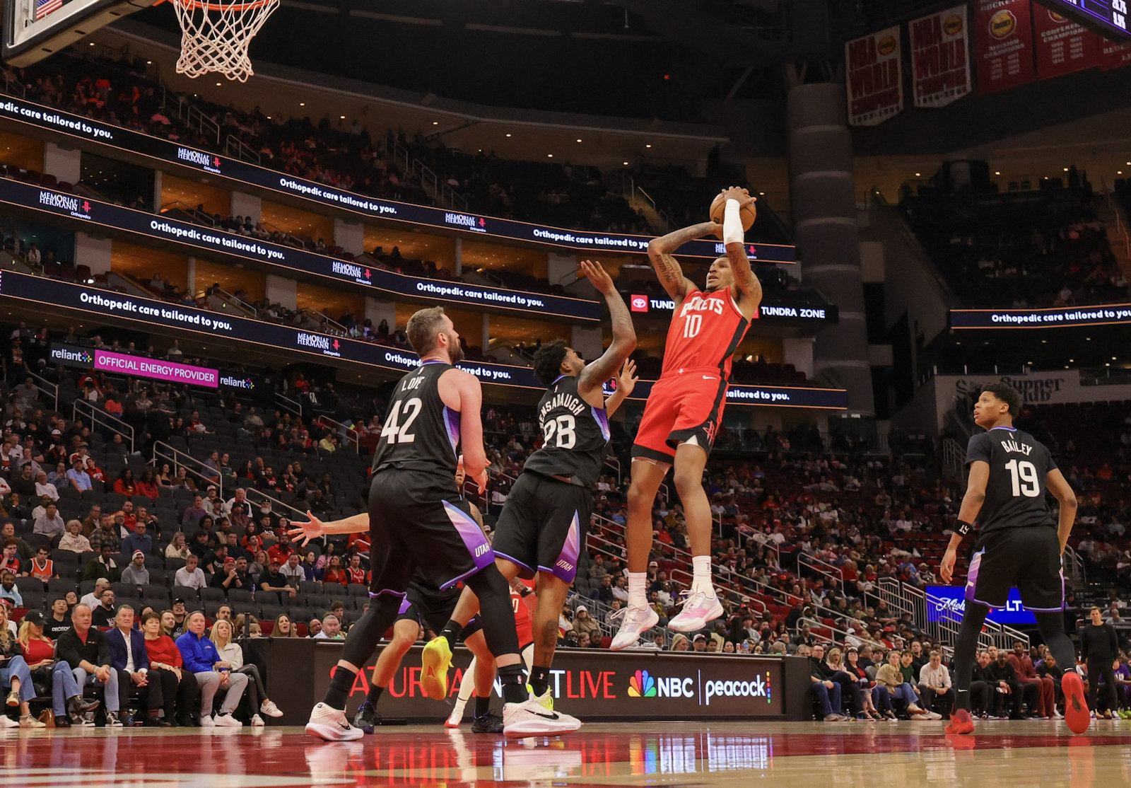 Servi successivement par Kevin Durant et Alperen Sengun, l’ailier-fort shooteur a pu se mettre en rythme avec deux tirs derrière l’arc totalement ouverts.