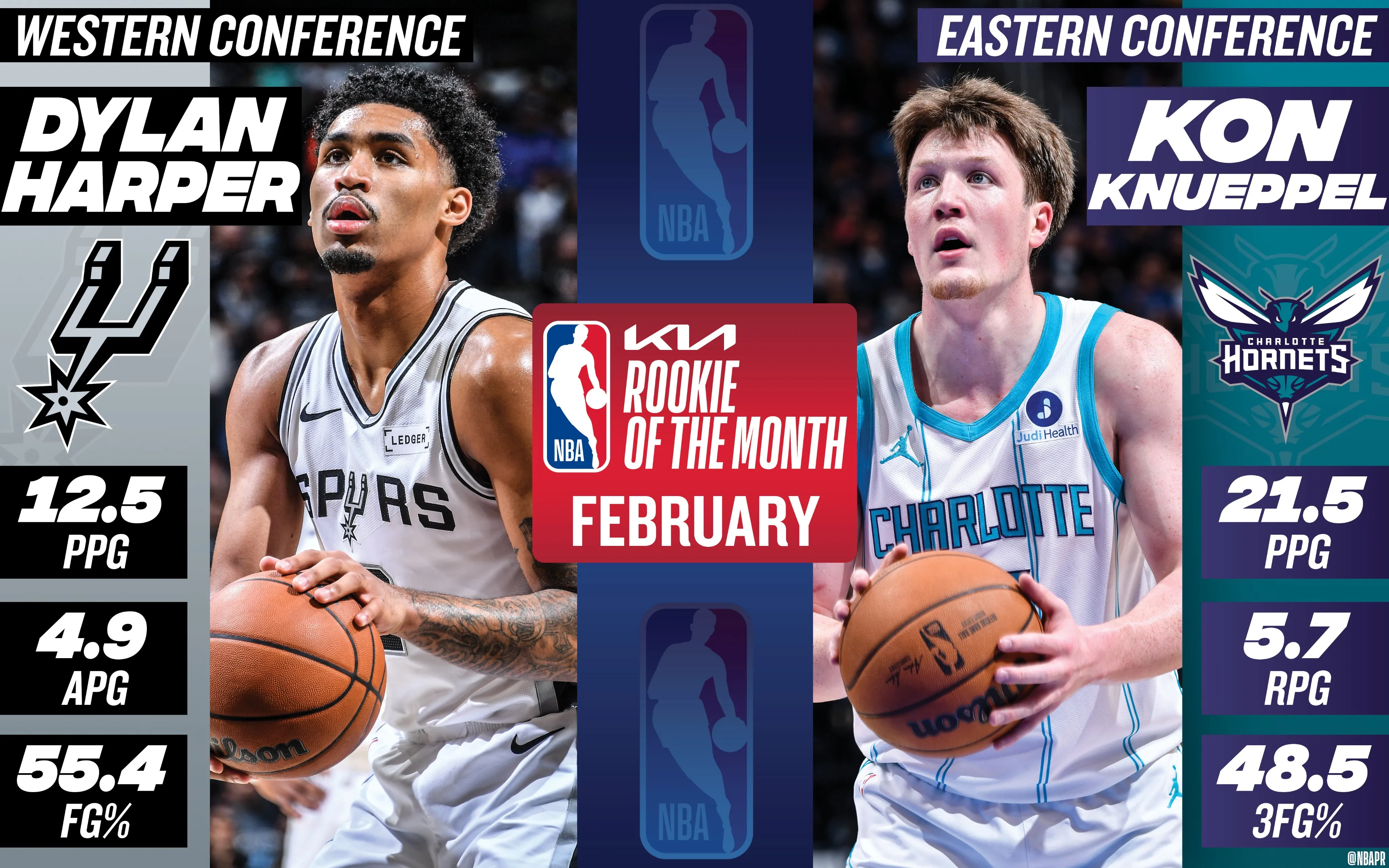 Les Spurs et les anciens Spurs sont d’ailleurs partout puisque la franchise texane rafle aussi un trophée côté « jeunesse ». Dylan Harper est ainsi élu « Rookie du mois » de février à l’Ouest, pendant que Kon Knueppel décroche l’honneur dans la conférence Est avec Charlotte.