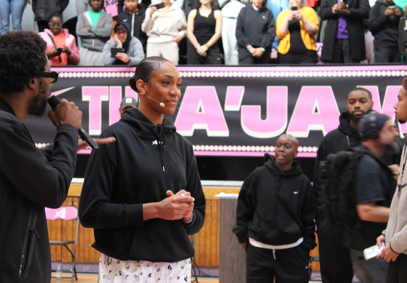 A’ja Wilson et Nike avaient choisi Paris pour lancer la tournée promotionnelle de l’intérieure des Las Vegas Aces. MVP de la saison, meilleure défenseure, championne WNBA et MVP des finales, A’ja Wilson était donc de passage dans le capitale ce mercredi, et elle n’est pas venue les mains vides puisqu’elle en a profité pour présenter officiellement sa deuxième chaussure signature, la Nike A’Two.
