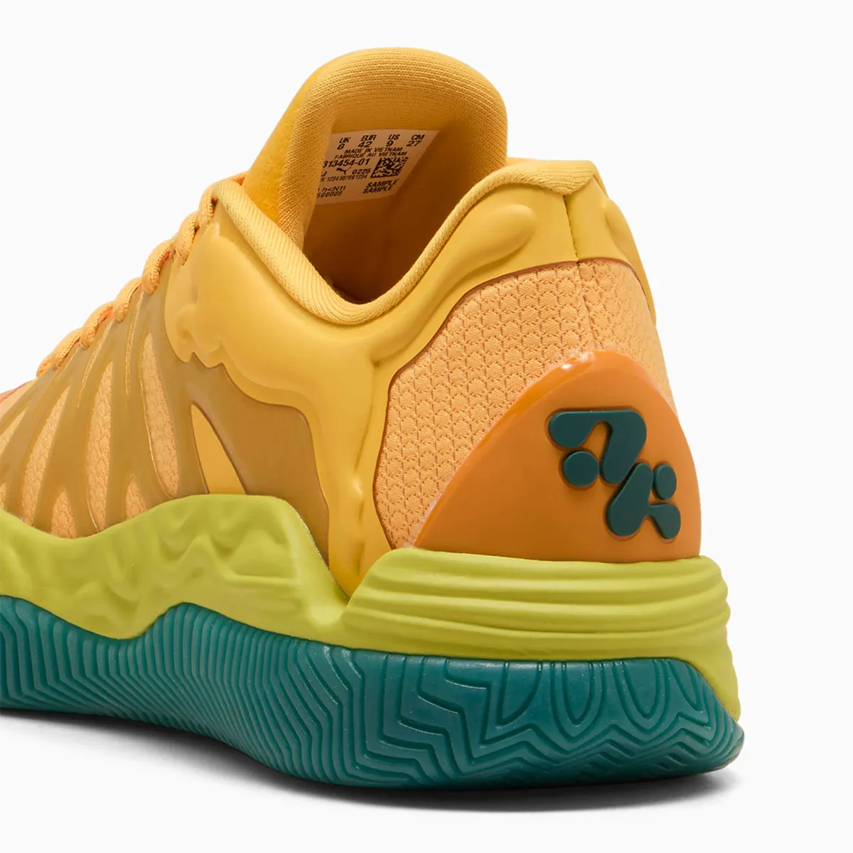 Cette version baptisée « Halucinating » se caractérise par ses différentes teintes jaune-doré pour habiller la tige, une couche de la nouvelle mousse « Nitro TM » en vert pâle au niveau de la semelle intermédiaire, et une semelle extérieure vert turquoise. Réalisée en collaboration avec le designer Salehe Bembury, la tige s’inspire des textures « signature » du créateur new-yorkais et se distingue par logo « Puma Cat » imposant au niveau de la cheville. Le tout nouveau logo du joueur apparaît en vert sur la languette et la base du talon.