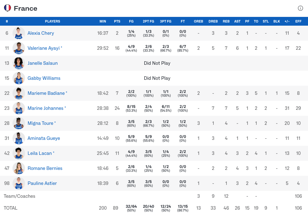 De quoi boucler un tournoi parfait, qui a montré la force de frappe globale des Bleues avec leurs WNBAers.