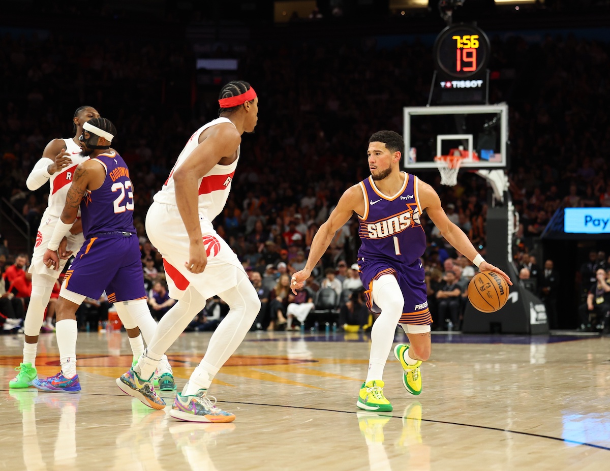 Le soleil rayonne à nouveau sur Phoenix. Après cinq revers consécutifs, les Suns ont retrouvé le chemin de la gagne avec une victoire autoritaire face aux Raptors (120-98). Ce succès s’est dessiné derrière les sorties efficaces de Devin Booker (25 points à 9/15 aux tirs) et Jalen Green (20 points à 8/15).