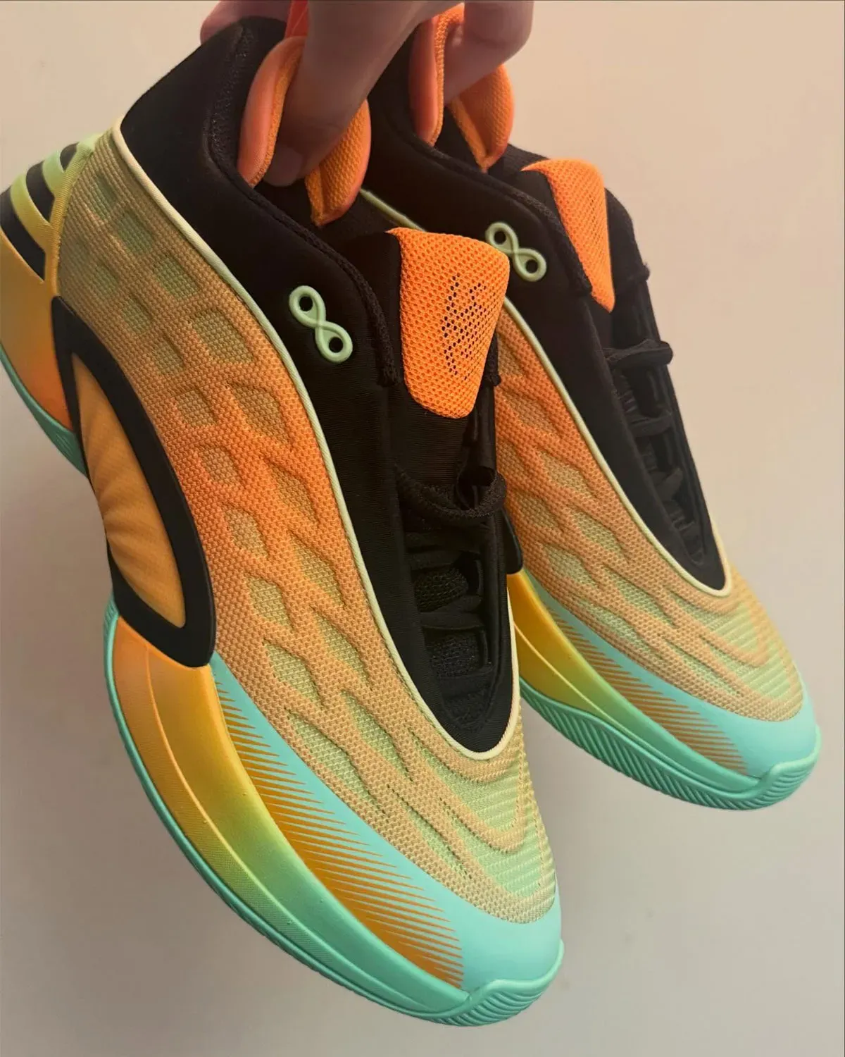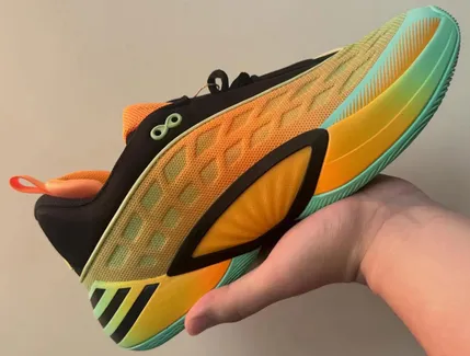 C’est au tour d’adidas de mettre en avant la huitième chaussure signature de Donovan Mitchell : la D.O.N. Issue 8 ! La collection arrive à surprendre dans le bon sens en innovant d’une année sur l’autre, et ce sera encore le cas cet été avec une tige retravaillée en partie quadrillée, ici dans un dégradé passant du vert à l’orange, sur laquelle on retrouve une partie supérieure noire similaire à la D.O.N Issue 7.