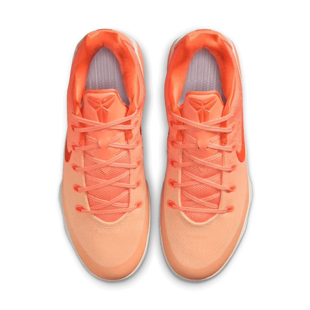 Ce nouveau coloris «WNBA» de la Kobe 9 Low EM Protro vient rappeler son engagement pour mettre en avant le basket féminin, avec une tige orange clair sur laquelle le «Swoosh» latéral et son logo «Stealth» ressortent d’un orange un poil plus foncé, l’ensemble reposant sur une semelle blanche.