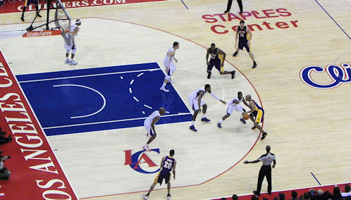 Le refrain est connu, quand Kobe n’est pas là l’équilibre offensif prend des apparats bouddhistes pour les Lakers. A la pause mercredi de la revanche du « Battle for LA », les statistiques offrent à nos mirettes l’anti-thèse de l’avant-veille : 4 joueurs à 8 points et plus pour 58,1% de réussite et tout shoot forcé interdit de parquet. Sans son MVP mais avec Derek Fisher, les Pourpres de Mike Brown récitent leurs gammes avec facilité. Steve Blake enfile trois bombes consécutives, Pau fait du Pau en toute sobriété et Bynum mange DeAndre Jordan.