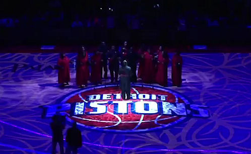 Le Palace d’Auburn Hills a toujours été un modèle du genre en matière de présentation des équipes, et les dirigeants ont encore frappé fort cette année avec un morceau d’Eminem (enfant du pays) revisité par un choeur gospel.