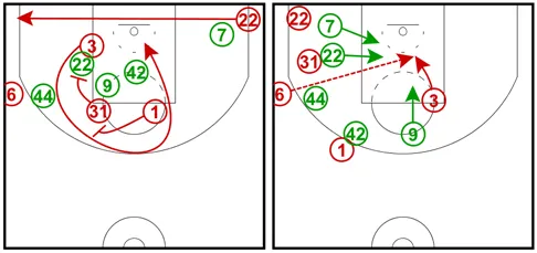 Pour Miami, c'est LeBron James, excellent passeur, qui se chargeait de faire la remise en jeu. Le but est d'offrir un lay-up à Dwyane Wade, il faut donc réussir deux missions : donner un temps d'avance à “Flash” et dégager la raquette.