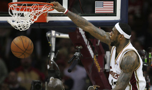 Enfin, il termine avec son dunk préféré des playoffs 2008. Contre Washington, sur une contre-attaque, “Boobie” Gibson lance à hauteur du cercle James pour un alley-oop d’une hauteur invraisemblable.