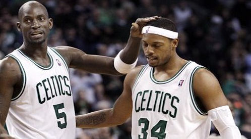 Après son panier, qui donnait 8 points d’avance aux Celtics, Pierce lève les bras au ciel, et reçoit l’accolade de Kevin Garnett. Le Garden se lève comme un seul homme pour l’applaudir. C’est fort.