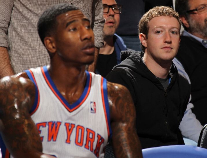 Ainsi, le créateur de facebook, Mark Zuckerberg, se retrouve derrière le banc pour ce cliché au décalage symbolique assez signifiant, entre les tatouages de Shumpert et son look de WASP businessman.