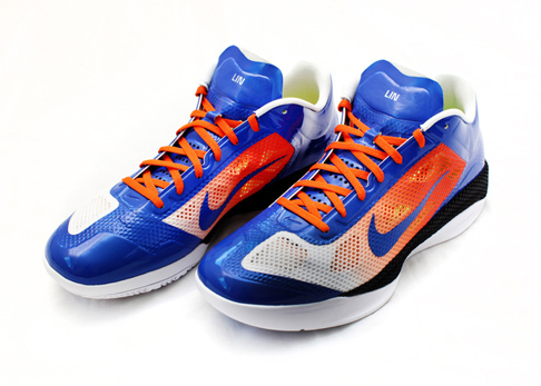 Le All Star Weekend est une affaire de spectacle et de publicité. Ainsi, Nike vient de dévoiler la chaussure au nom de Jeremy Lin. Ce n’est pas un modèle nouveau mais une adaptation de la Nike Zoom Hyperfuse Low iD aux couleurs des Knicks.