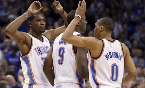 Malgré une soirée tristoune au niveau de l’adresse pour le Big Three local (Durant, Westbrook, Harden), le Thunder s’en sort en laissant bredouilles les Mavs sur les 3 dernières minutes de jeu. Oklahoma City emporte sa 13ème victoire de suite à domicile sur le score de 95-91.