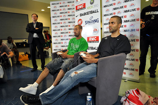 On peut voir TP défier Kadour Ziani sur la Xbox 360, faire l’entre-deux dans un match de 3-contre-3 ou signer quelques dédicaces.