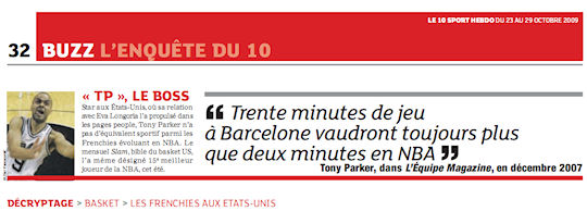 Pour une fois, ça ne brosse pas dans le sens du poil et nos confrères s’interrogent sur le vrai niveau de nos compatriotes. Comme base de leur analyse, ils reprennent la réflexion cinglante de Tony Parker, qui en 2007, affirmait qu’il n’y avait vraiment que deux Français en NBA, lui et Boris Diaw.