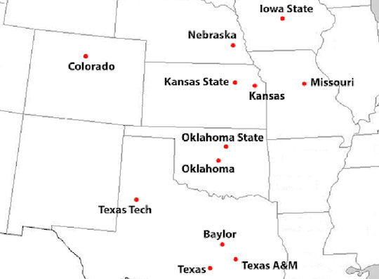 Suite de notre preview des plus grandes conférences de NCAA, avec aujourd’hui la Big 12, composée -comme son nom l’indique- de 12 facs, localisées essentiellement au centre des Etats-Unis. La Big 12 s’est officiellement formée en 1994, lorsque, suite à la dissolution de la Southwest Conference, 4 universités texanes ont rejoint la jusque alors nommée, Big 8.
