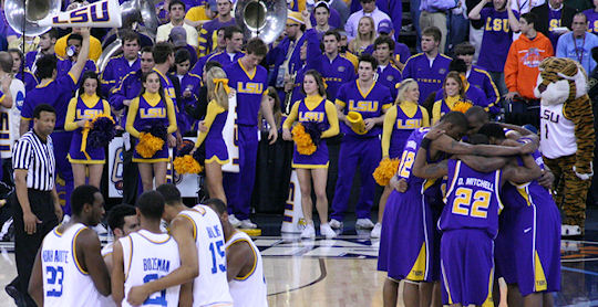 « Love Shaq University » s’était arrêté au second tour du tournoi NCAA l’année dernière, battue par le futur champion, North Carolina. En fait le dernier fait de gloire de l’université du légendaire Pete Maravich (44 points de moyenne durant ses années de fac), remonte à 2006, lorsque les Tigers, emmenés par Glen « Big Baby » Davis et Tyrus Thomas avaient atteint le Final Four (voir photo).