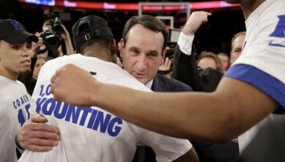 Pouvait-il y avoir un plus bel endroit que le Madison Square Garden pour célébrer la 1 000e victoire de Mike Krzyzewski en NCAA ? Le légendaire coach de l’université de Duke, qui a commencé sa carrière à Army en 1975, est devenu dimanche le premier coach de l’histoire à atteindre la barre des 1 000 victoires dans le championnat universitaire. Les Blue Devils se sont en effet imposés face à St. John’s (77-68) avec 22 points de Tyus Jones et 17 points – 10 rebonds de Jahlil Okafor.