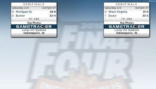 A partir de minuit, et en direct sur le site de la NCAA, les deux demi-finales avec d’abord Butler – Michigan State, puis Duke – West Virginia.