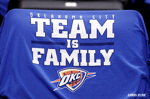 Seule équipe de sport professionnel évoluant dans une ligue majeure de la ville, le Thunder est le centre d’attention et le point de ralliement de toute la région. Le logo du Thunder est partout présent. Sur les réverbères, sur les façades des boutiques et des restaurants du centre-ville, sur les voitures qui arborent des petits drapeaux. Les habitants ne semblent connaître qu’une adresse où acheter leurs vêtements : la boutique officielle de la Chesapeake Arena. Et même l’hôtel occupé par la NBA et les journalistes s’est adapté en revoyant le design de ses cartes d’accès aux chambres.