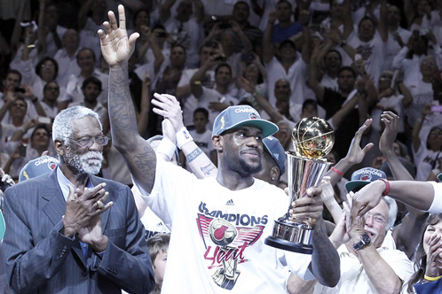 Dans les vestiaires, les joueurs fêtent leur titre sous une pluie de bière et de champagne. Le vestiaire du Heat a été bâché et se retrouve inondé par ce flot de joie et d’alcool mêlé à quelques larmes. Dans le ventre de la salle, les supporters descendent en masse les escaliers pour regagner la rue où ils fêteront la victoire de leur équipe pendant de longues minutes.