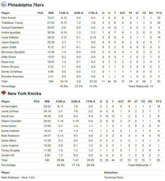 Cette nuit, au Madison Square Garden, l’ancien Clipper, signé à prix d’or l’été dernier, a confirmé son retour au premier plan en compilant 20 pts et 8 rbds face à David Lee et Darko Milicic. Epaulé de Thaddeus Young (26 pts), Brand permet aux Sixers de s’imposer 93-85 devant un public newyorkais qui ne s’est pas gêné pour siffler ses protégés.
