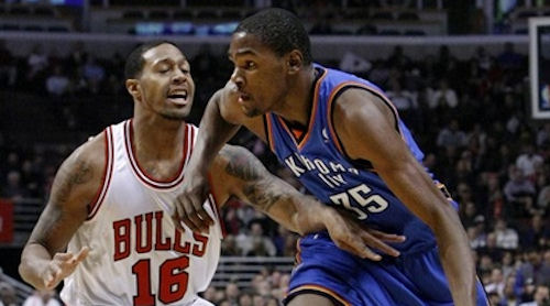 Dans l’affrontement entre les deux joueurs de la semaine dans leur conférence respective, Derrick Rose et Kevin Durant, le thème du match était le rebond offensif. L’équipe qui parviendrait à s’imposer sous les panneaux emporterait la décision. Et après une première mi-temps d’observation, ce sont les protégés de Scott Brooks qui ont réussi à s’imposer dans la mythique salle de Chicago.