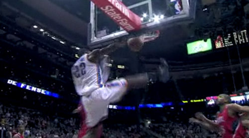 Les deux coachs font tourner leur effectif et ce sont les remplaçants du Thunder qui font la meilleure impression. Jamal Crawford cherche à forcer les choses avec un beau panier en pénétration plus la faute, mais en face Serge Ibaka fait une bonne entrée avec 6 points rapides (30-41, 5:30). Mike Woodson est contraint de rappeler ses titulaires rapidement sur le parquet. Durant revient aussi et inscrit déjà son 15e point suite à trois lancer-francs. Joe Johnson et Josh Smith, sur un nouveau gros dunk (on est gâté à ce niveau là), ramènent leur équipe à 6 points (38-44, 7:20). L’écart se maintient pendant un moment avec que Mike Bibby ne sonne la charge en fin de quart temps pour ramener les siens à 3 points à la mi-temps. Les deux hommes les plus impressionnants jusque-là auront été Durant (15 points dont à 3/9 mais 9/9 au lancer-francs et 4 rebonds) et Josh « couteau suisse » Smith (11 pts à 5/6, 5 rbds, 5 passes, 2 contres).