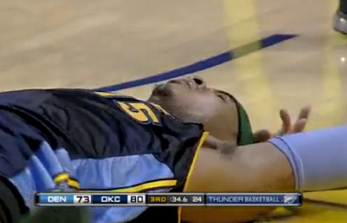 Le tout avec un Carmelo Anthony à moitié KO après un choc avec Kevin Durant. Melo quitte ses coéquipiers, sonné à la fin du troisième quart-temps. Mais il revient dans le money time pour épauler Billups.