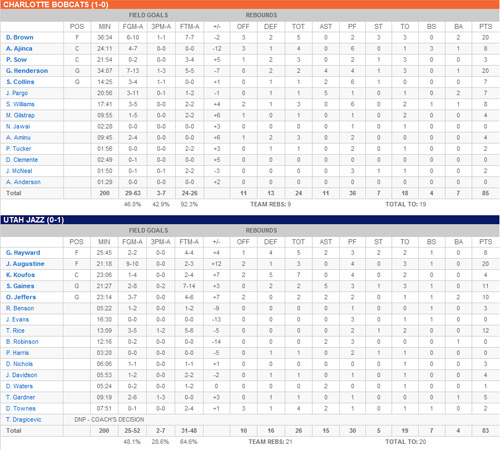 Premier match : Charlotte Bobcats – Utah Jazz (85-83)