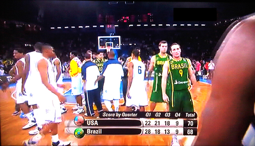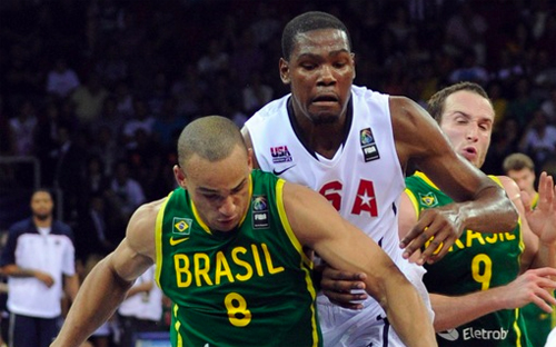 Le dernier quart-temps était extrêmement tendu avec 2 équipes qui éprouvaient les pires difficultés à marquer. Andre Iguodala et Lamar Odom rataient même des lay-ups tout faits. Kevin Durant était lui rattrapé par les règles FIBA. Des marchés, un panier accordé après avoir touché le filet et les brésiliens n’étaient plus qu’à une possession.