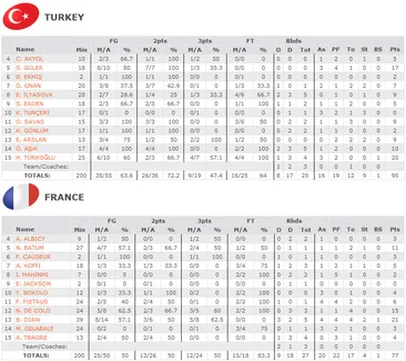 C'est Turkoglu, par deux nouveaux 3 points, qui se chargea d'éteindre tout espoir. Ömer Asik prenait par la suite le relai et la Turquie prenait 26 points d'avance à la fin du troisième quart-temps. Il fallait jouer pour ne pas complètement exploser. Les défenses se relâchaient et Boris Diaw enchainait les tirs à longue distance. Les Français, plutôt adroits dans l'exercice (12/24 à 50%) venaient mourir à 18 points. Les Turcs, eux, finissaient à 72% de réussite à 2 points. Simplement hallucinant.