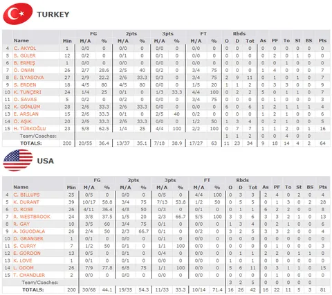 Les Turcs, émoussés par leur match de la veille, assommés par les coups de Kevin Durant, n’ont pas pu s’accrocher très longtemps. Ils récoltent tout de même une belle médaille d’argent, salués par un fabuleux public, chantés par toute une nation, battus par plus forts qu’eux (81-64).