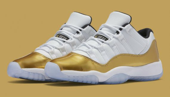 Cette fois, Jordan Brand habille en effet la Air Jordan 11 d’or en référence à la couleur de la médaille que chaque sportif espère. Son nom fait aussi référence aux cérémonies de clôture olympique et notamment, la prochaine à venir à Rio. Ici, le liseré de cuir doré se conjugue au cuir blanc, ponctué par le noir de la doublure intérieure.