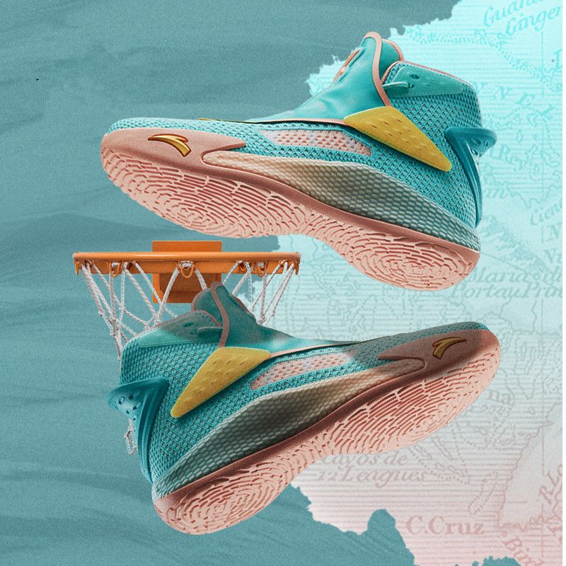 En voici un autre grâce au compte Thebasketballshoes, baptisé « Have fun LA », qui comme souvent chez Anta est audacieux niveau couleur. On notera la mention « Designed for the best shooter in the game » sur la semelle.