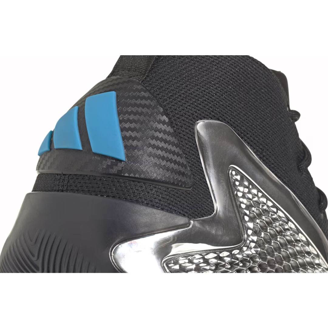 La semelle extérieure ressort également en noir tandis que les trois bandes d’adidas sur le talon et le logo du joueur sur la languette apparaissent dans ce bleu « Timberwolves » déjà utilisé sur un coloris précédent.