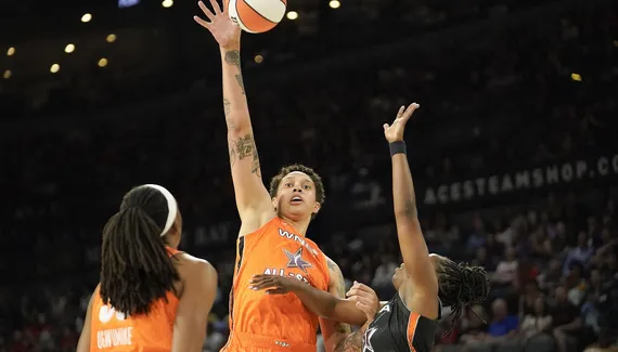 Au lendemain de l'exploit insensé de Sabrina Ionescu, ce match des étoiles a été remporté par la Team Stewart face à la Team Wilson (143-127). L’événement de la soirée, c'était évidemment la présence de Brittney Griner, détenue plusieurs mois en Russie en 2022.