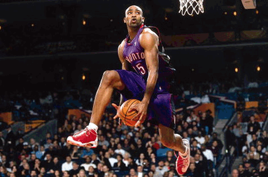 Quelle explosivité pour un pivot ! Il arrive à sauter tellement haut qu’il domine n’importe lequel de ses adversaires lorsqu’il s’agit de récupérer la balle en altitude. Et l’impression de son dunk « Superman » (même si ce n’était pas vraiment un dunk) était ahurissante. - 1. Vince Carter :