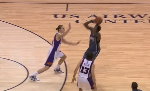 La défense de Raymond Felton sur Steve Nash a également été très efficace. L’ancien double MVP n’était seulement qu’à 2 pts (0/7) et 3 balles perdues à la mi-temps. Accablé par les fautes, Amare Stoudemire fait pire : il ne joue que 6 minutes pour un zéro pointé à la mi-temps. Pourtant, après 24 minutes de jeu, les Suns menaient 54-48, Charlotte se montrant maladroit pendant que Channing Frye et Robin Lopez assuraient la marque. Surtout, ce poison de Jared Dudley provoquait de nombreuses pertes de balle (Felton, Murray, …).