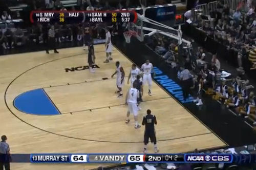 - Murray State upset Vanderbilt au buzzer, 65-64. Après avoir mené presque tout le match, Murray State se retrouve mené de un point à 4 secondes de la fin, mais le Senior Danero Thomas rentre le tir de la gagne au buzzer. Les Racers joueront Butler.