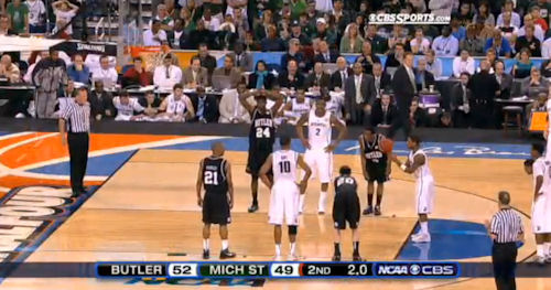 Temps-mort puis remise en jeu pour les Spartans. Intelligemment, Butler fait la faute immédiatement pour éviter tout 3-points. Il reste 2 secondes. Lucious met le premier (52-50). Il fait exprès de manquer le second mais… c’est Hayward qui récupère. Victoire de Butler qui atteint la finale.