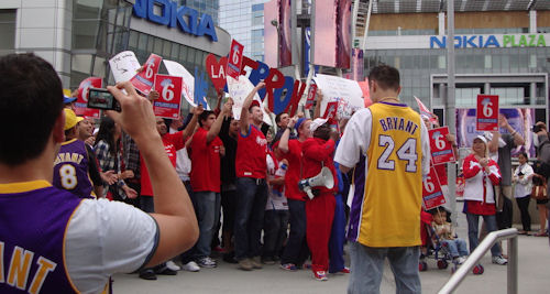 En France, il y a les “apéros Facebook”. Aux Etats-Unis, il y a désormais les “King Parade”. C’est le sémillant Clipper Darrell qui a lancé l’idée, et la “manifestation” avait lieu jeudi à 15h30, devant le Staples Center.