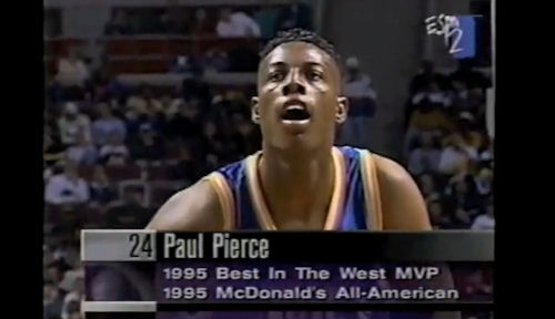 Ce sont nos confrères de Slam qui sont allés déterrer cette vidéo qui date de 1995. Il s’agit des highlights du Roundball Classic, un match qui réunissait les meilleurs lycéens du pays et qui était en concurrence avec le McDonald’s All-American Game. Une compétition née en 1965 et qui a disparu en 2007, faute de sponsors…