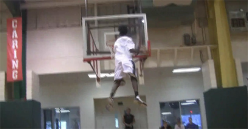 Quoi qu’il en soit, il y en a un qui aurait bien aimé que l’on pense à lui pour ce titre et c’est Taurian Fontenette, alias Air Up There (ou Mr 720, comme vous voulez), que l’on retrouve lors d’un match amical disputé à l’Howard University. Là encore, c’est du lourd.