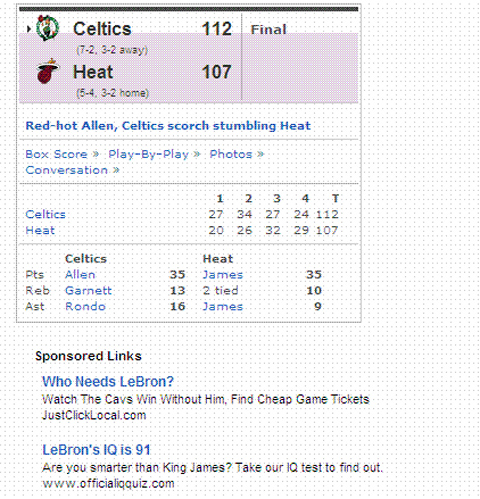 - Si vous êtes à Cleveland et que vous regardez les résultats du Heat, voilà le genre de publicités que vous pourriez avoir.