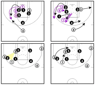 La vitesse d'exécution est la clef de la réussite du système. Kobe Bryant démarre sa coupe vers le cercle au moment où Fisher envoie le ballon vers Gasol qui transmet instantanément à son arrière. Le démarquage est fait et le panier est ouvert.