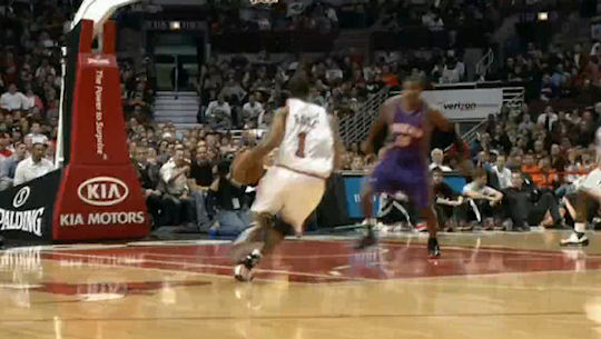 On voit aussi, que Derrick Rose a des cannes de folie, il monte très haut (demandez aux joueurs des Suns), et s’élance très vite ballon en main, pour les contre-attaques.